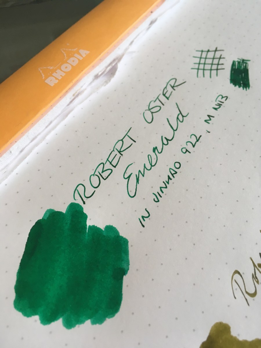 Satire aside, I’m impressed with Mr Oster’s green liquid. Vibrant, sheeny, great shading and a joy to write with, whatever the pen! Here are my thoughts.*